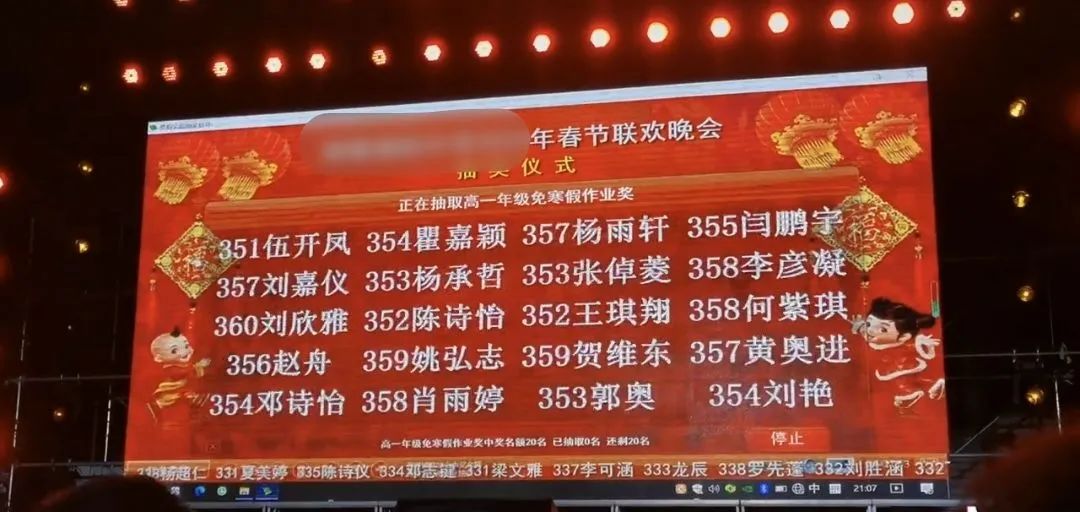 紅色熒屏上飛速滾動著姓名和編號,舞臺下學生群體爆發出一陣狂歡聲。這是近日發生在湖南常德市一中學2024春節聯歡晚會現場的一幕。