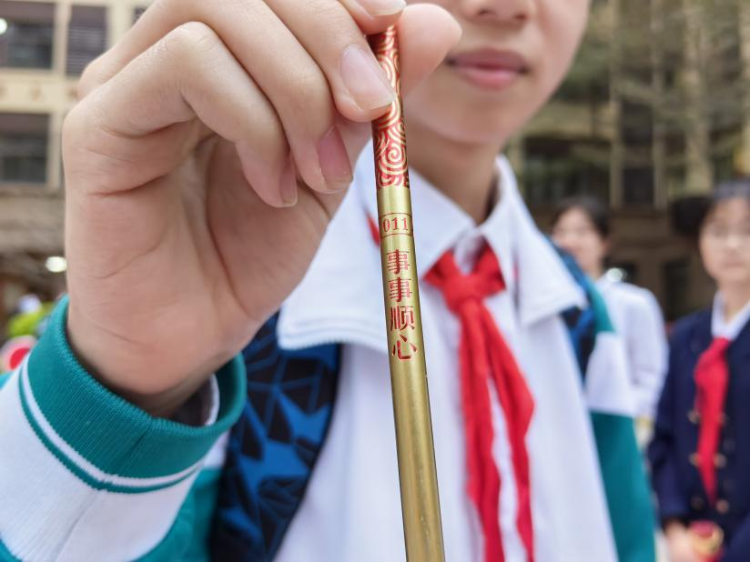 2月20 日清晨,廣東實驗中學荔灣學校初中部(以下簡稱“省實荔灣初中部”)的同學們和老師們踏著金龍賀春的地貼,步步生花,回到學校。校團委和學生會精心準備了小驚喜——一支學生專屬的“上上鉛”。“身體健康”“金榜題名”“出類拔萃”“前程似錦”“學業進步”“乘風破浪”……同學們和老師們抽到滿載祝福的鉛筆時,喜悅之情溢于言表,燃起了對新學期的無限憧憬和期待。