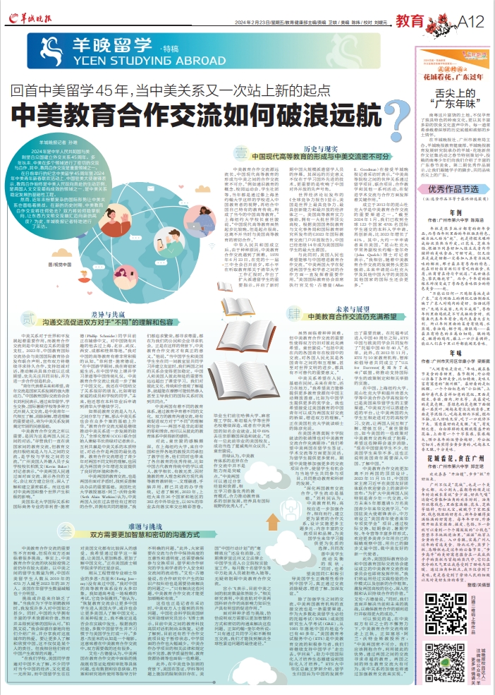 然而,近年來紛繁復雜的國際形勢讓中美關系也面臨著挑戰。在新的歷史時期,中美教育合作交流將往何處去?雙方將如何穩掌航向,讓東西方文明交流融匯邁向新的高度?為此,羊城晚報記者特地進行了采訪。