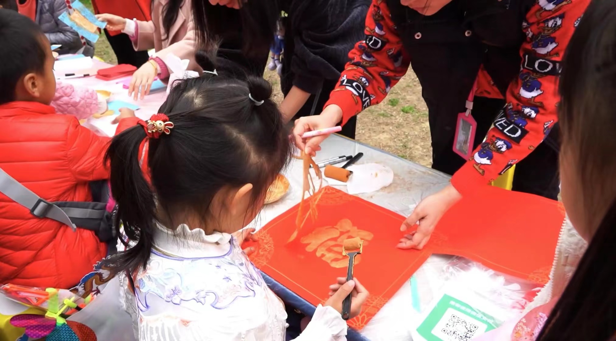華服紅裝處處逢,兒童歡聲盈園中。活動當日,廣州市第二幼兒園內張燈結彩,鼓樂喧天。孩子們或兩兩結伴,或與家人攜手同游,頭戴節日裝飾,手持行運風車,穿梭于各個攤位間,盡情嬉戲。