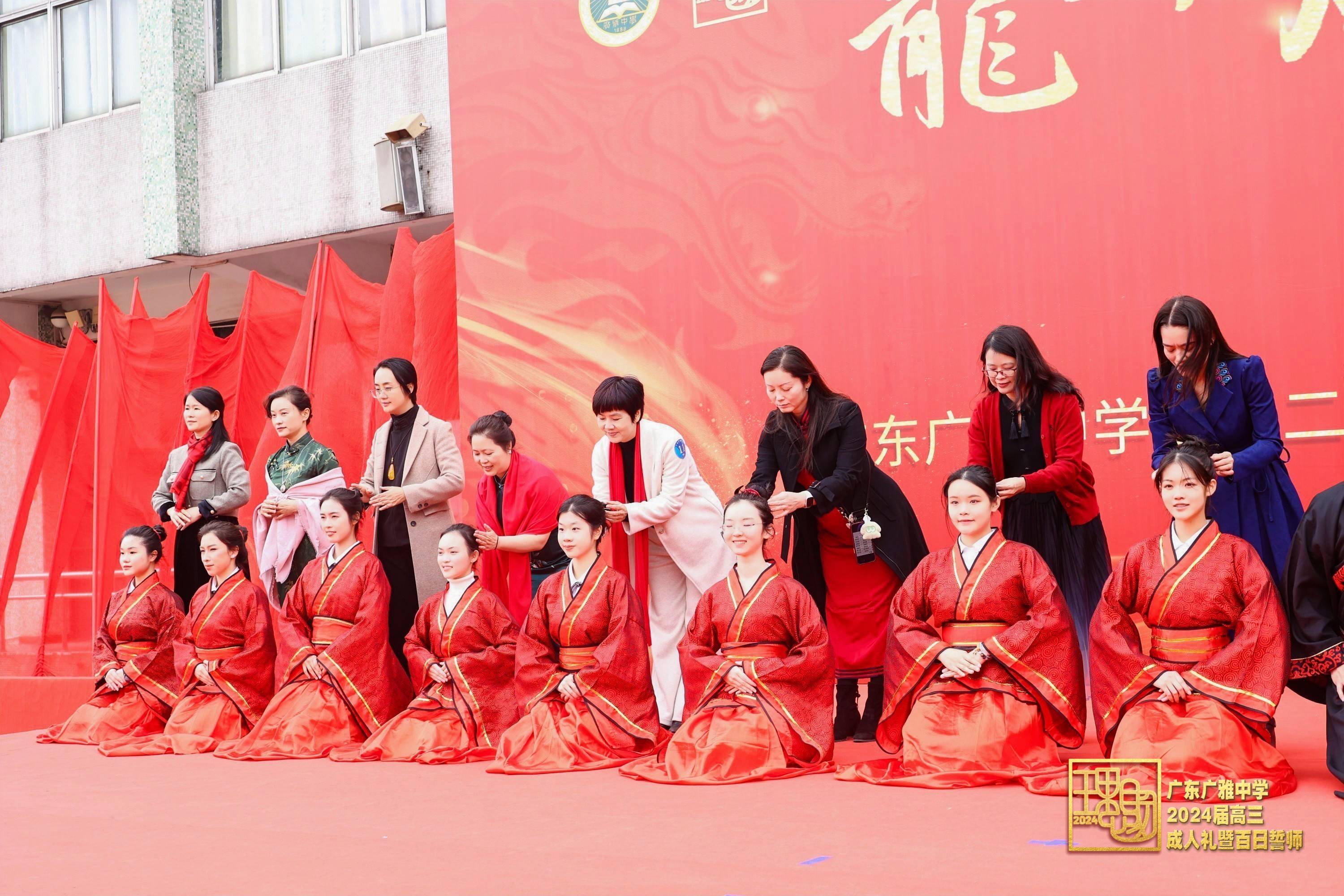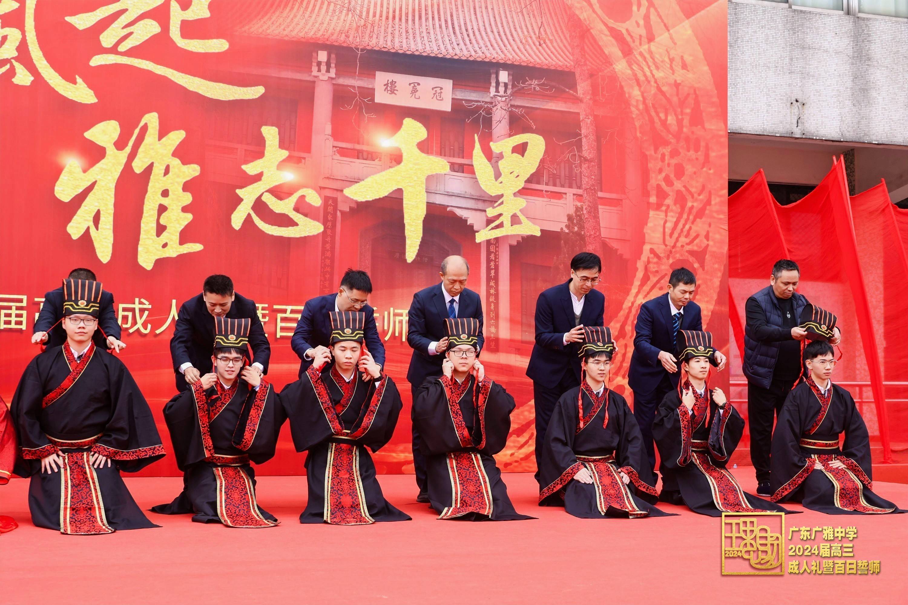 此次百日誓師活動結(jié)合了廣雅學(xué)生發(fā)展指導(dǎo)精品課程“成長三禮”之“成人禮”。“冠者,禮之始也”,由各班家長和學(xué)生代表演繹了我國漢民族傳統(tǒng)成人禮儀,男子行“冠禮”,女子行“笄禮”,莊嚴(yán)肅穆,告別懵懂幼稚,相約成熟穩(wěn)健,父母為孩子加冠,為青春“加冠”,為夢想加油。