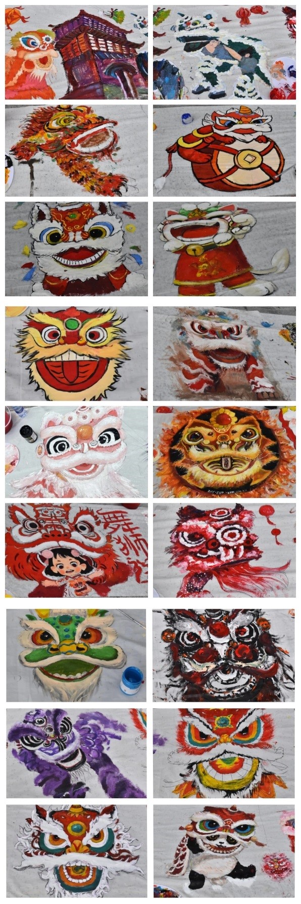 活動現場,遂溪許屋村騰藝醒獅團與嶺南師院體育科學學院醒獅隊聯合開展了多彩醒獅表演,美術與設計學院百名師生在表演現場揮毫作畫,百米長卷的多彩醒獅躍上眼簾,有黃色、金色、紫色、紅色等異彩紛呈的多彩醒獅,也有寫實、動漫、卡通、簡約、3D效果等形神兼備的多樣醒獅,現場繪制的“百獅畫”為“遂溪醒獅”IP形象設計征集火熱造勢。