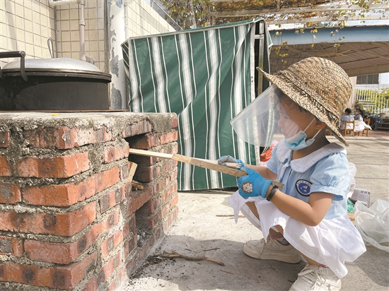 記者聆聽了該園的非遺項目活動,包括雷州窯陶瓷制作技藝、植物染制作技藝和拓片裝裱修復技藝課程,以及項目活動《“蠔”美味》、體能立體大循環。孩子們在真實的環境中直接感知、親身體驗、動手操作,通過“計劃—游戲—回顧”的環節,體驗非遺的魅力和勞動的快樂。看著自己精心制作的作品,孩子們獲得了成就感。