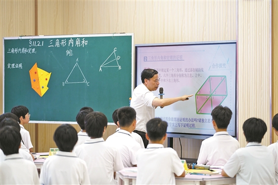 6月19日上午,在湛江市寸金培才學校,廣東省教育研究院黨委委員、教學教材研究室黨支部書記吳有昌作為幫扶專家,與湛江市寸金培才學校的數學老師何敏霞上了一節《三角形的內角和》的接力課。來自湛江市各縣市區的150多位初中數學教師現場聆聽了專家授課和點評。