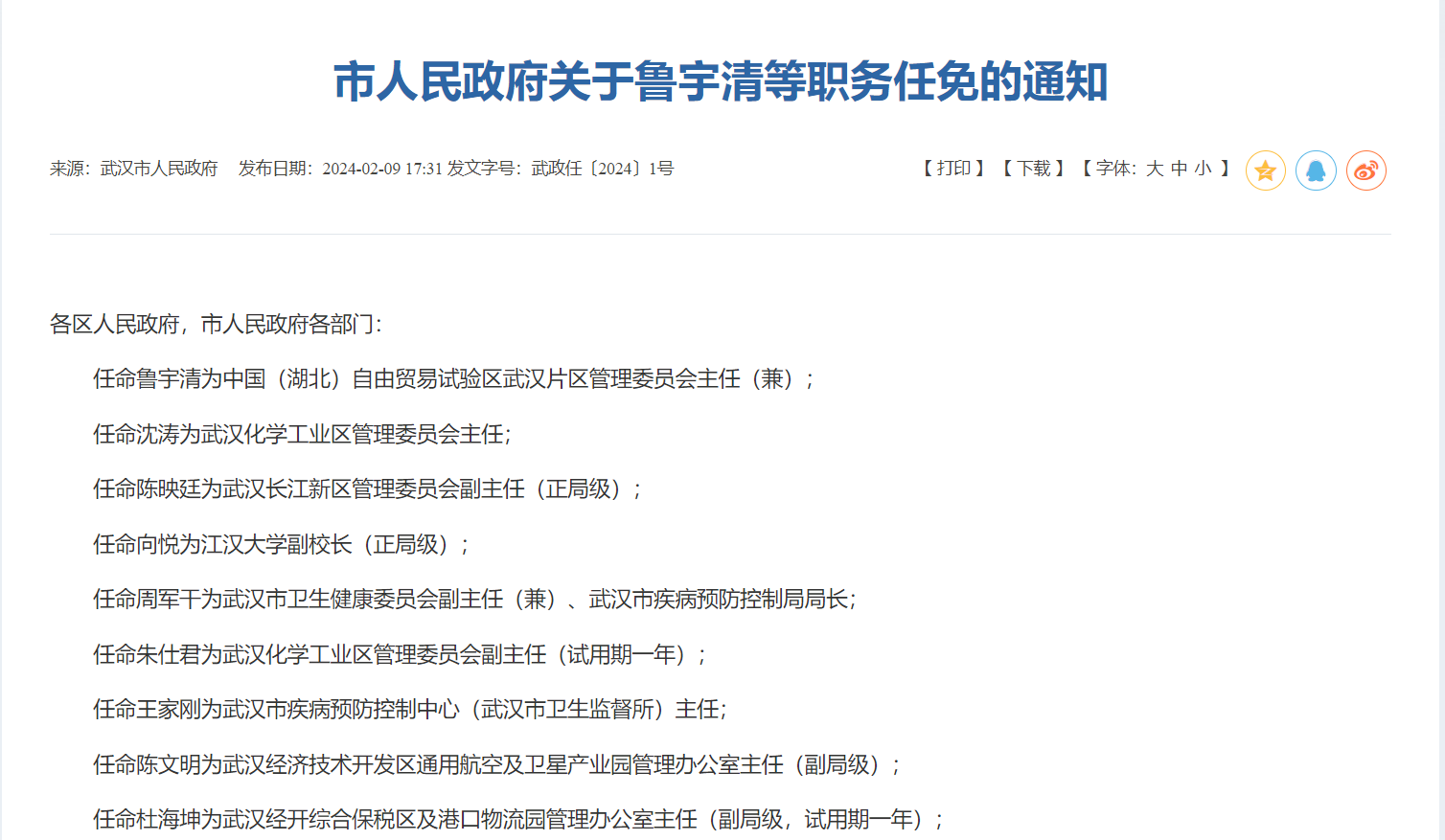 武漢市人民政府發(fā)布:任命向悅為江漢大學(xué)副校長(zhǎng)(正局級(jí))。