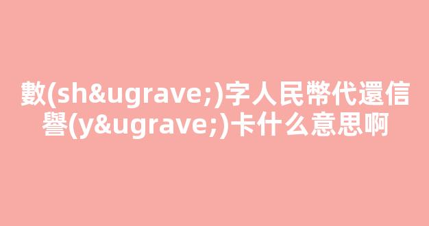 數(shù)字人民幣代還信譽(yù)卡什么意思?詳細(xì)解析與操作指南