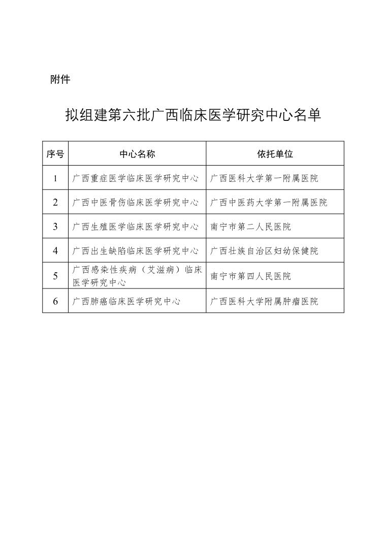 自治區(qū)科技廳關(guān)于擬組建第六批廣西臨床醫(yī)學(xué)研究中心名單的公示